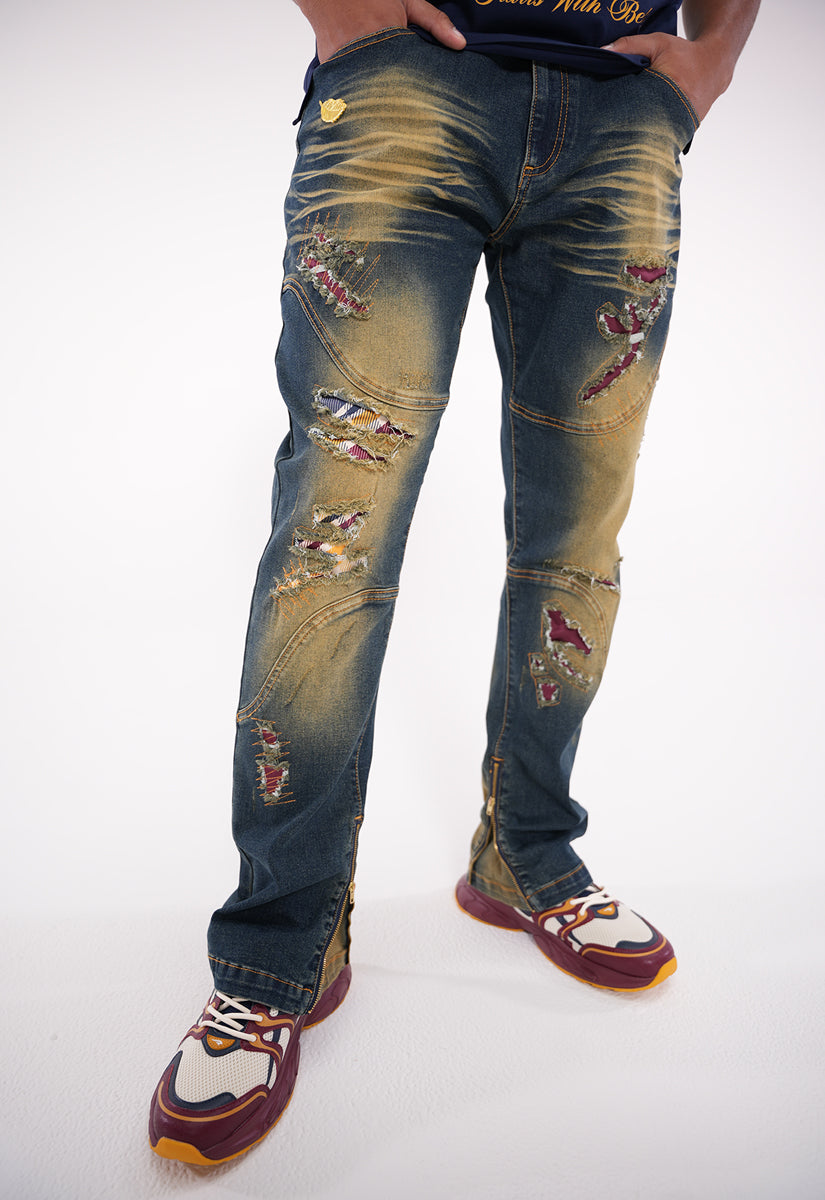 Plaid Patch Work Shirt, Denim Jeans and Trucker Hat Bundle