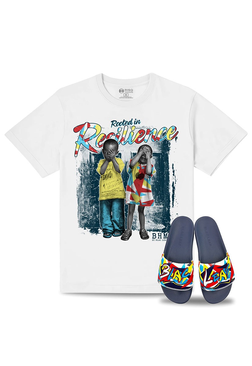 Rooted in Resilience White T-Shirt (Olympic) and Olympic Slides Bundle