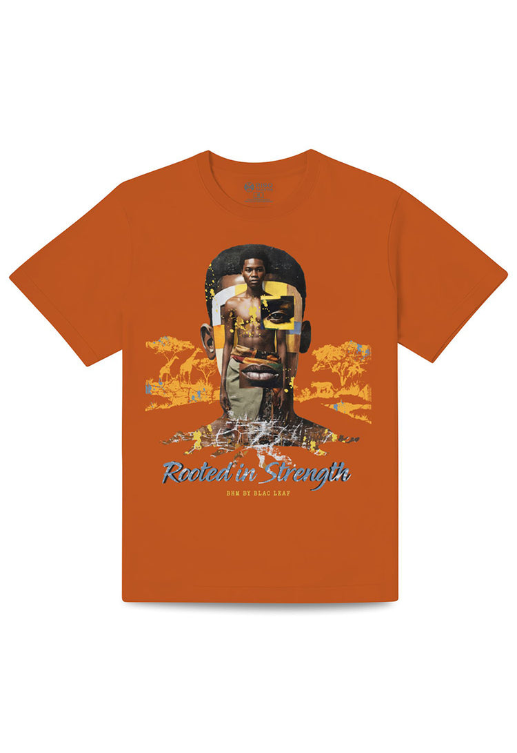 Rooted in Strength Orange T-Shirt celebrates Black History Month with bold style and meaningful design. This vibrant orange graphic tee features an African male face rendered in striking geometric patterns, commanding attention at the center of the piece. The background reveals an expansive African tree landscape, creating depth and connection to ancestral roots. The geometric facial design contrasts beautifully against the natural scenery, symbolizing the blend of modern identity and cultural heritage. "Rooted in Strength" is emblazoned underneath, serving as a powerful reminder of resilience and pride. Perfect for making a statement during Black History Month or any time you want to wear your heritage with confidence and flair. This tee combines artistic expression with cultural celebration, making it a conversation starter that goes beyond fashion.