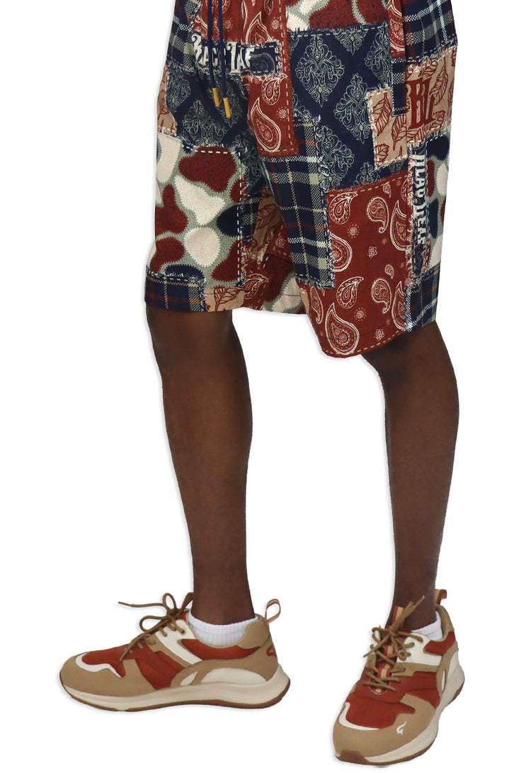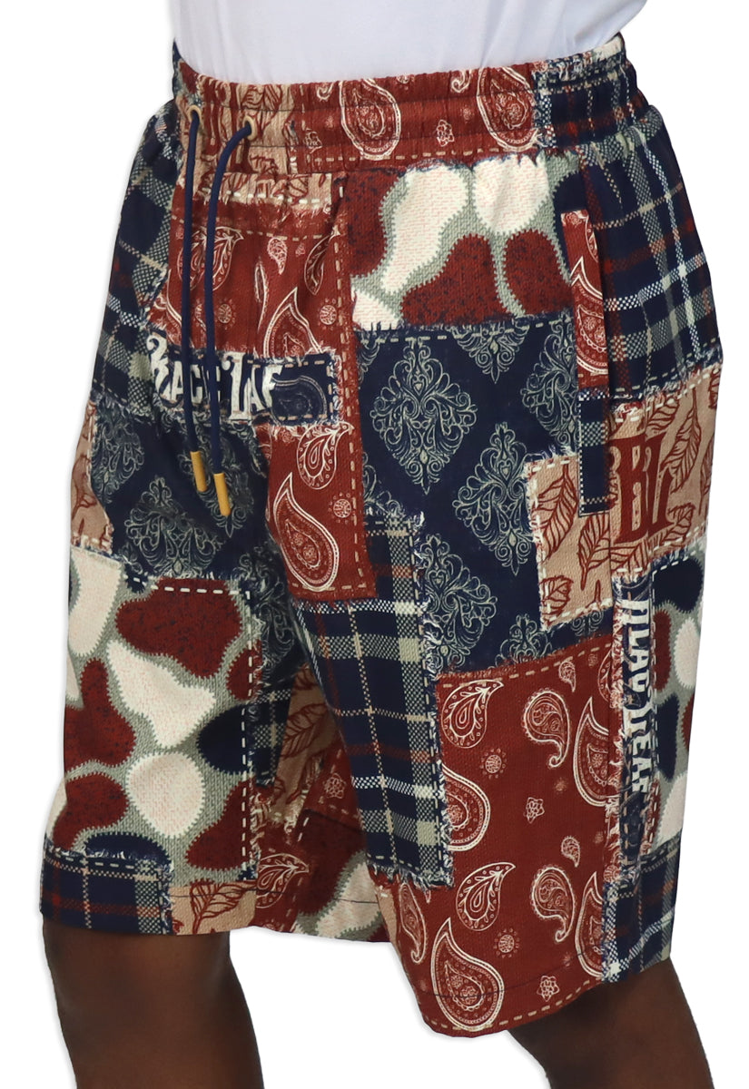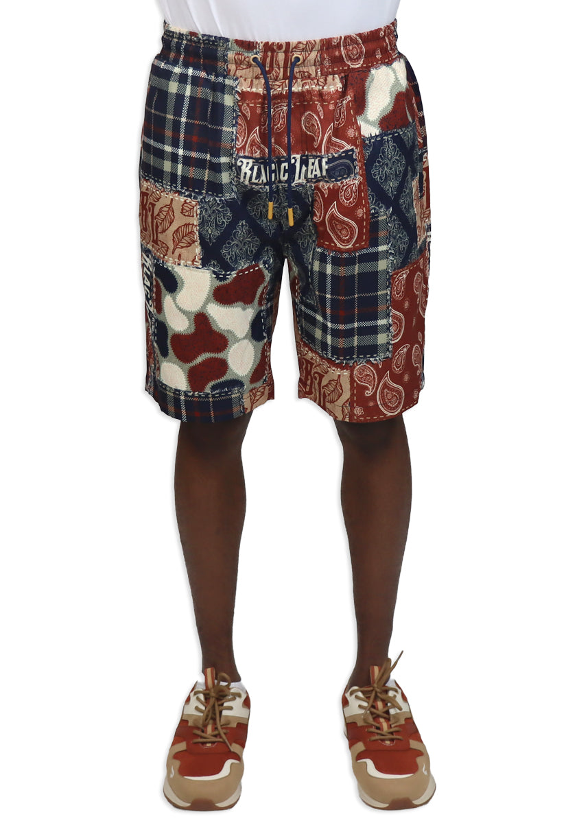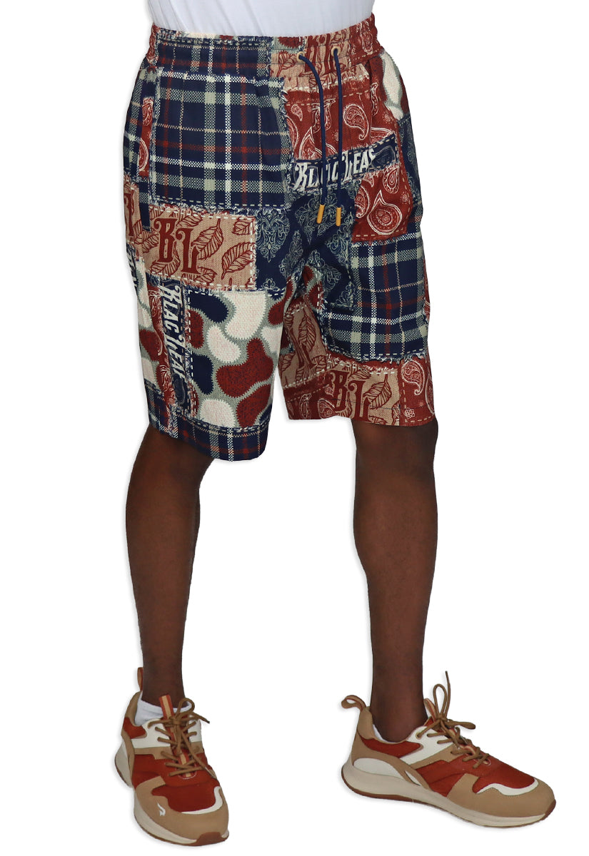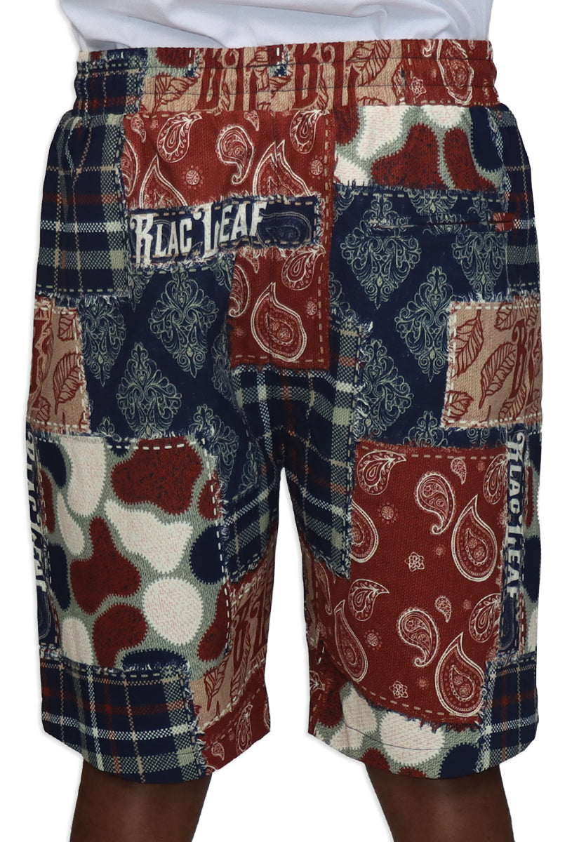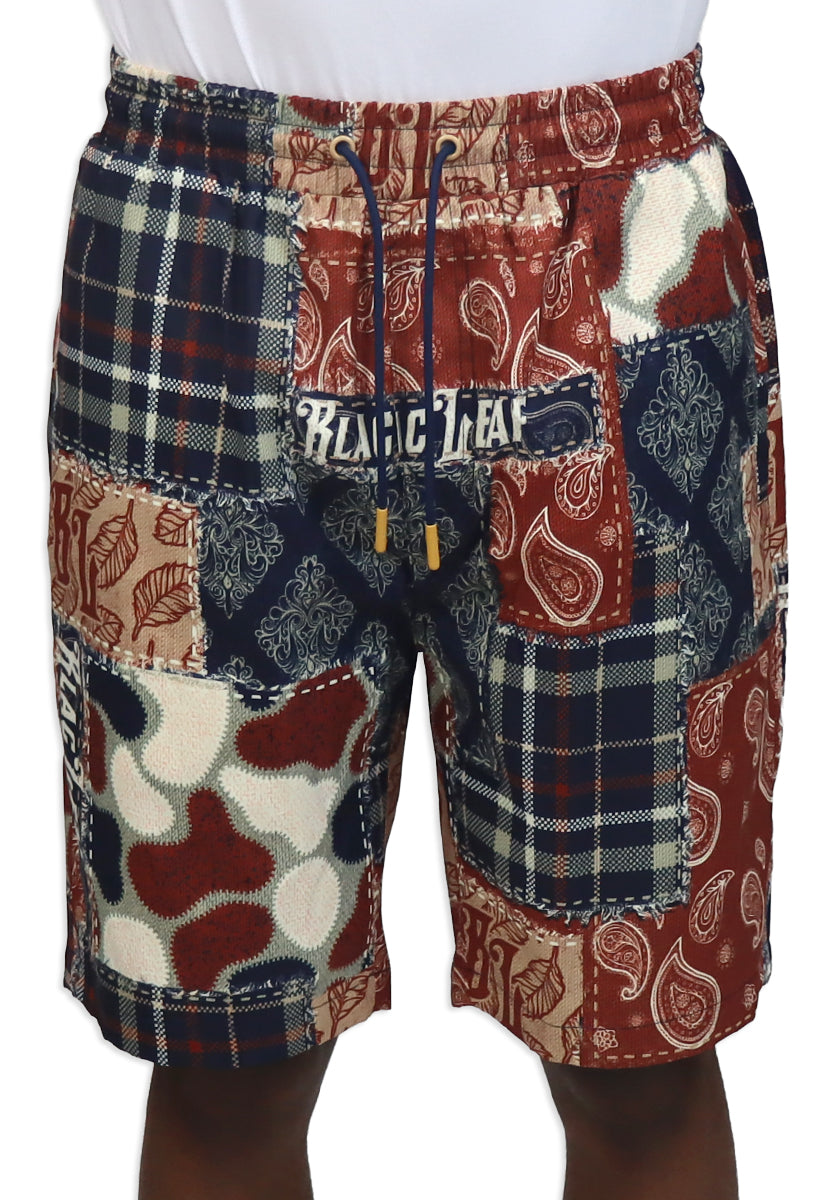 Greatness Made Me Patchwork shorts bring bold style and nostalgic charm to your wardrobe. Featuring an eye-catching patchwork plaid design that blends navy and rust tones with antique-inspired elements, these shorts make a statement piece that's anything but ordinary. The front showcases the iconic Blac Leaf branding rendered in a classic antique font, keeping the look refined despite the adventurous pattern mix. Perfect for those who aren't afraid to stand out, these shorts combine playful patchwork aesthetics with quality craftsmanship. Whether you're channeling vintage vibes or just embracing your bold side, Greatness Made Me Patchwork shorts deliver personality and flair in every wear.