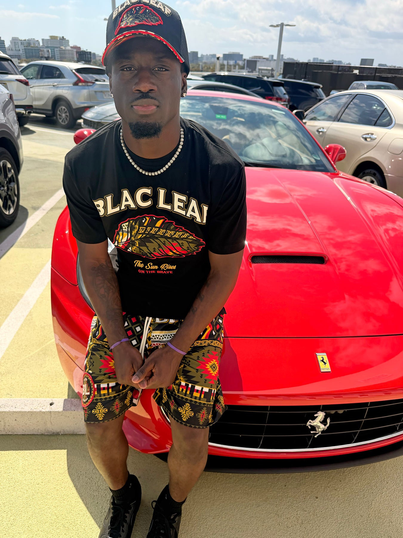 Sunrise On The Brave T-Shirt Make a bold statement with this striking all-black tee that celebrates courage and cultural artistry. The front features the iconic "Blac Leaf" embroidery in natural tones with olive outline stitching, paired with an intricate American Indian leaf patch design detailed in red and black embroidered outlines underneath "The Sun Rises On The Brave" stitched across the bottom,. Flip it around to discover the powerful geometric Indian Chief design with "Blac Leaf" underneath. Every stitch tells a story—this isn't just a shirt, it's wearable art that honors tradition while keeping your style sharp and unapologetic. Perfect for anyone who wants their wardrobe to speak volumes about who they are.