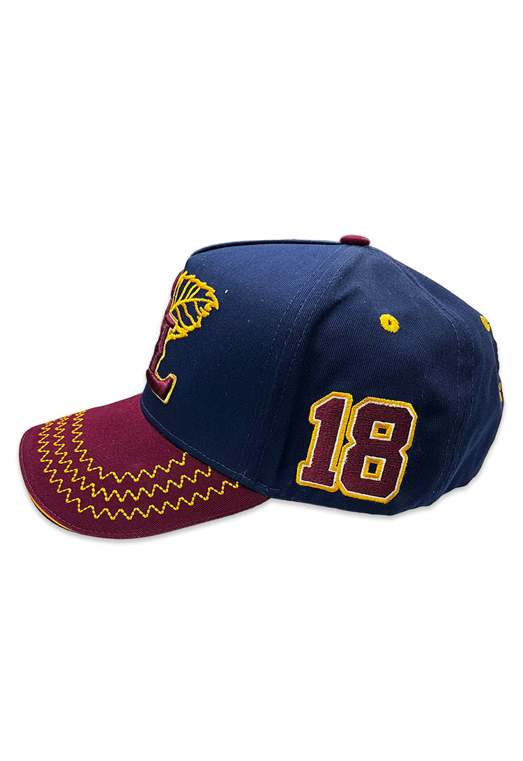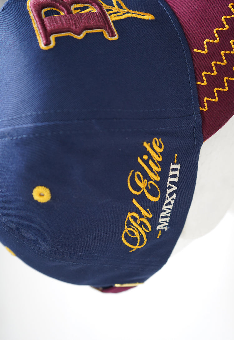 The BL Elite Trucker Hat is your new go-to accessory for serious style. This navy beauty features a striking burgundy rim that pops against the classic base, with intricate wheat stitching details running throughout for that premium, handcrafted vibe. The standout design showcases our iconic BL and Leaf logo front and center—the "BL" sits bold in burgundy, surrounded by delicate wheat stitching, while the leaf outline completes the look in matching wheat thread. Whether you're repping the brand at the gym, on the road, or just living your best life, this trucker hat delivers comfort and personality in one package. Structured yet breathable, it's the kind of hat that makes a statement without trying too hard.