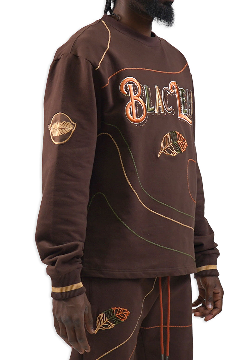 Take your wardrobe to the next level with a crewneck that's anything but ordinary. Our signature BLAC LEAF LOGO makes a statement in bold orange, olive, khaki, and cream in Puff Embroidered, while a smaller Leaf of the logo adds a touch of understated cool.
