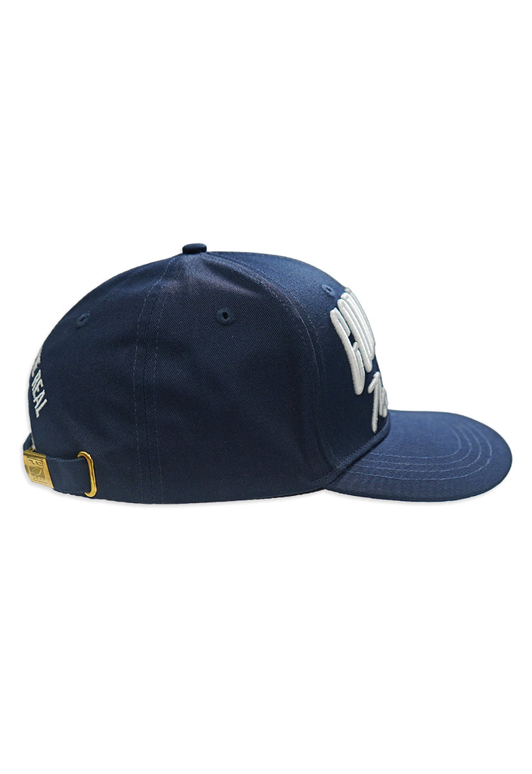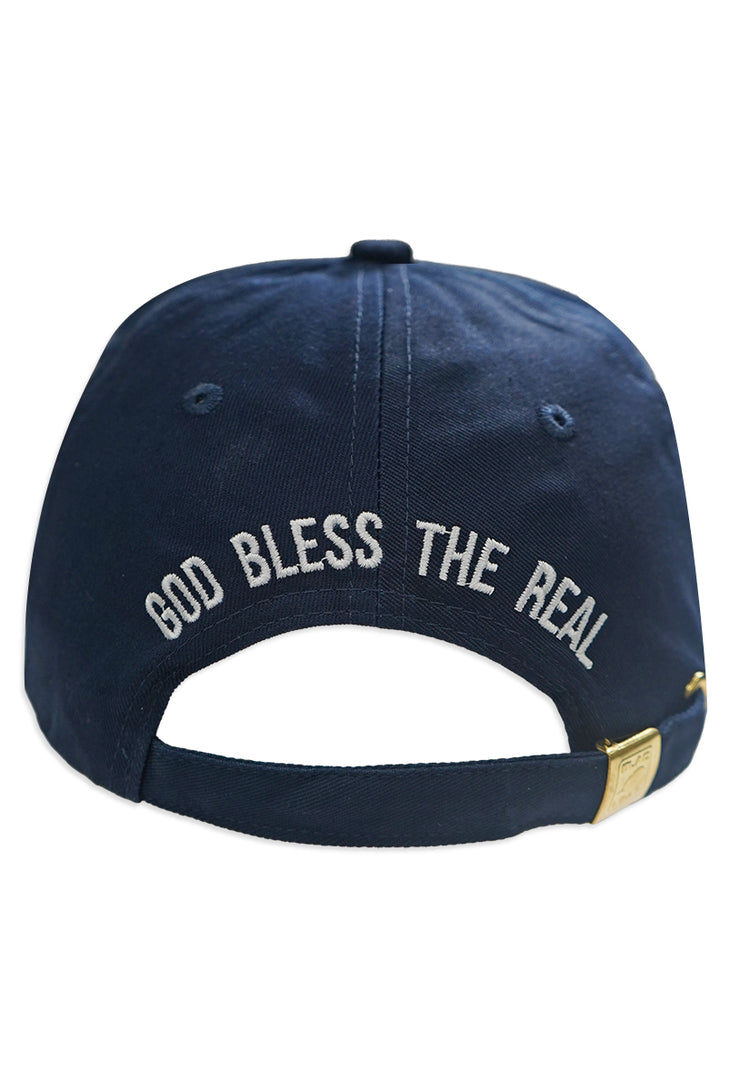 The God Bless The Real Strapback Hat in vibrant navy adds a pop of color to any outfit while making a bold statement. Featuring plush white puff embroidery that proudly spells out "GOD BLESS THE REAL," this hat combines style with attitude. The adjustable strapback ensures a perfect fit for all-day comfort, whether you're out and about or just keeping it casual. Perfect for those who want to celebrate authenticity and stand out with a playful, confident vibe. Hat is all navy color with white embroidery.
