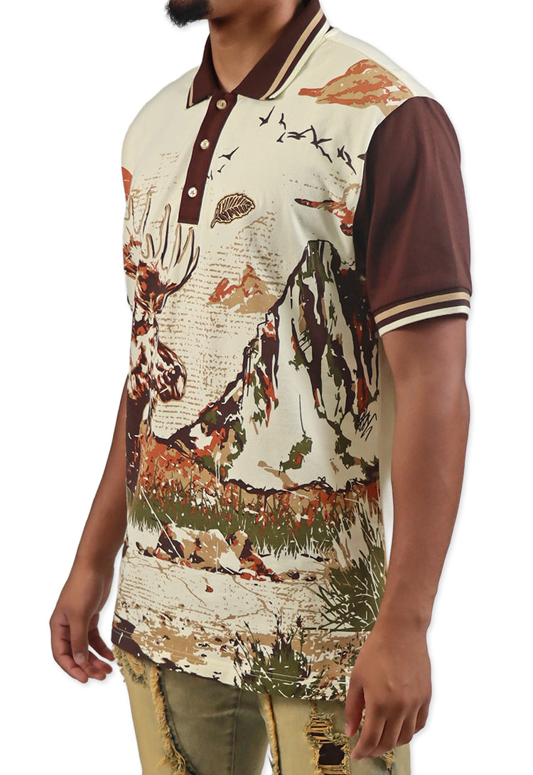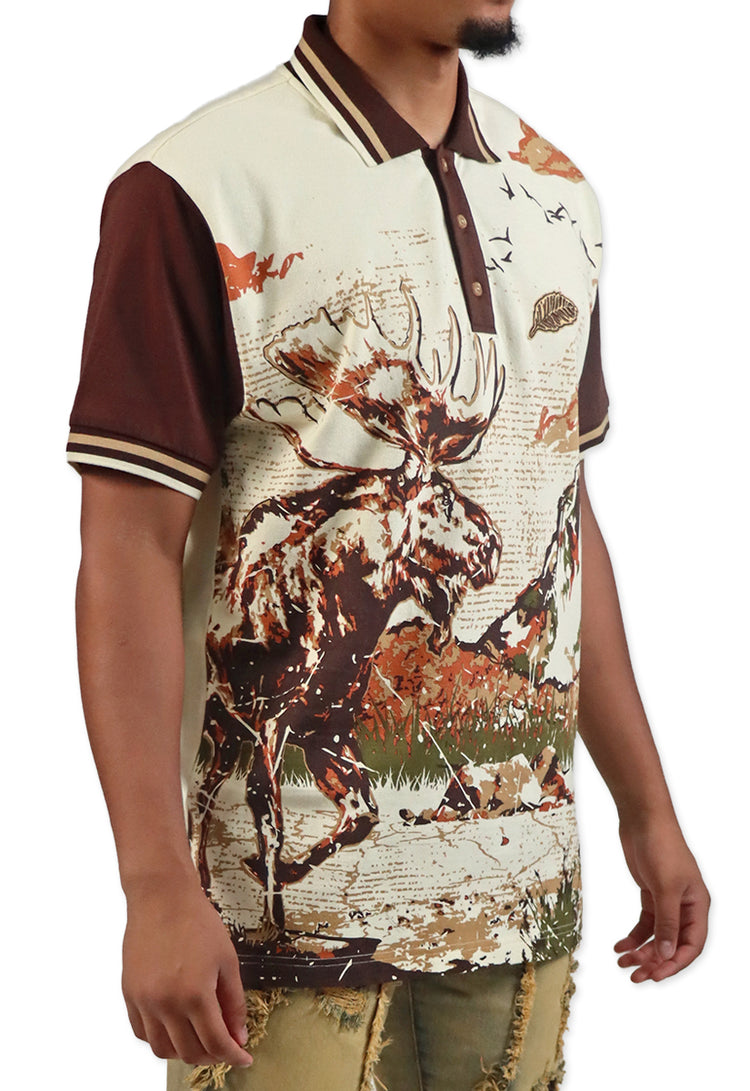 This polo shirt isn't just stylish, it's also a statement. Featuring a huge moose and mountain design on the front and a powerful message on the back, this shirt is a bold reminder that big things come from having a clear purpose. Don't just look great, let your shirt inspire greatness!