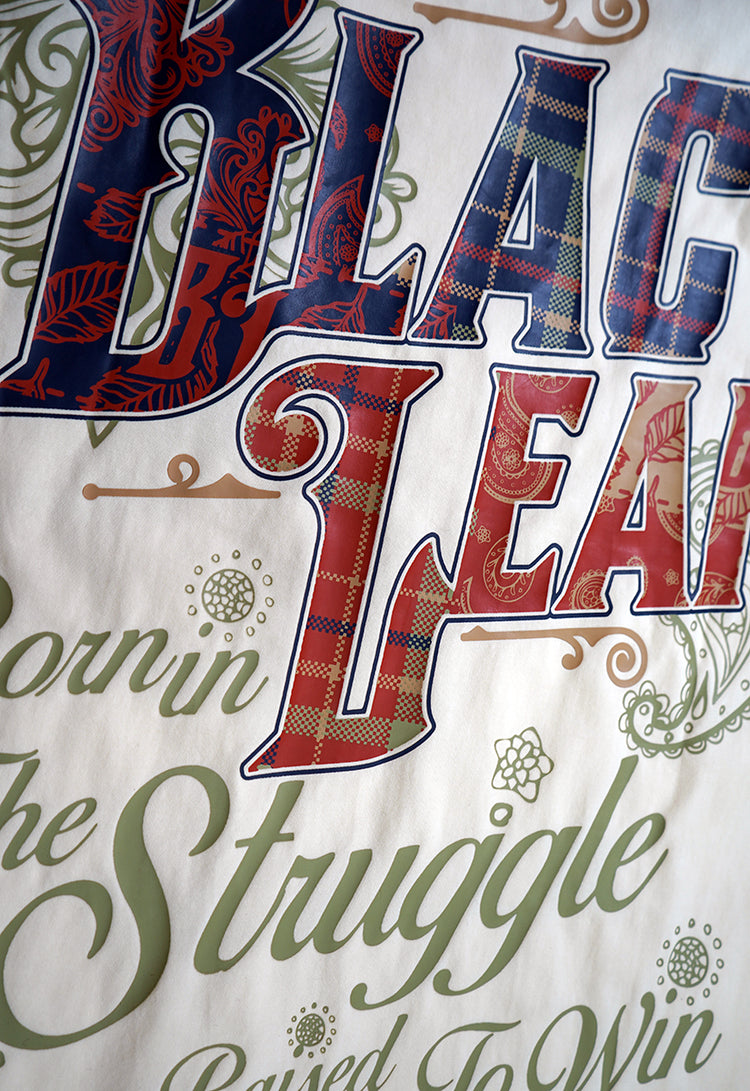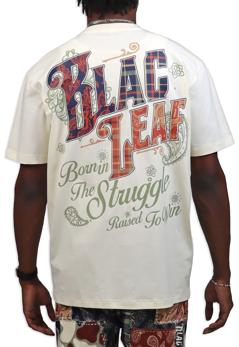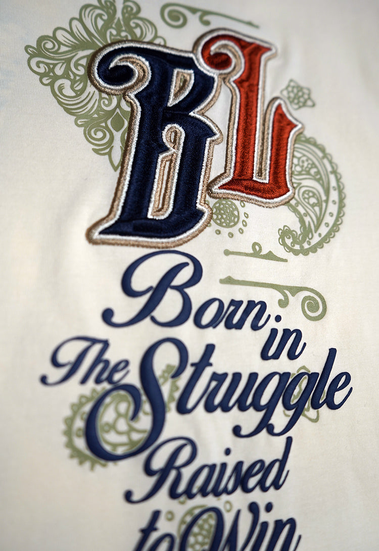 Born In Struggle T-Shirt Wear your story with this premium all-natural color tee that celebrates resilience and triumph. The front features the iconic BL logo with navy embroidered "B" and dark rust embroidered "L," accented with vintage-inspired details. Below, "Born In The Struggle Raised To Win" appears in bold puff gel print, setting the tone for what's in the back side. Flip it around to discover the back's statement design: "Blac Leaf" rendered in navy and rust plaid patterns with antique-style embellishments that add character and depth. The same empowering message—"Born In The Struggle Raised To Win"—finishes the look in gel print. This isn't just a shirt; it's a wearable reminder of strength, growth, and victory. Perfect for anyone who's earned their stripes and isn't afraid to show it.