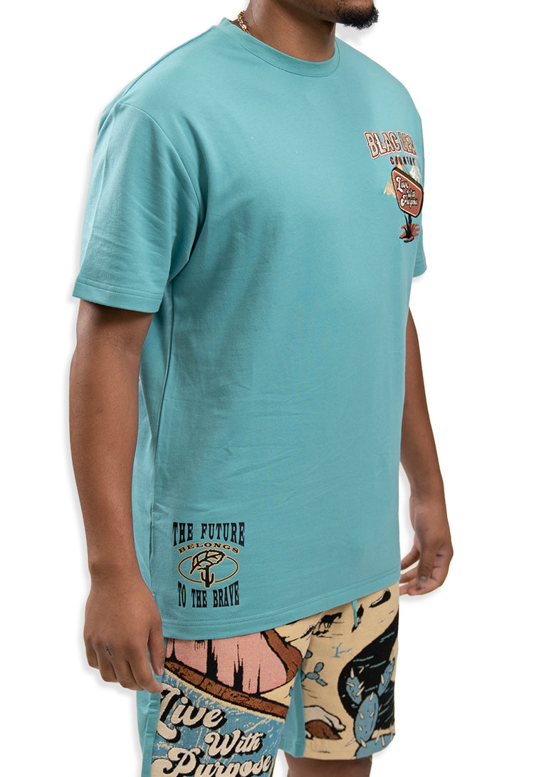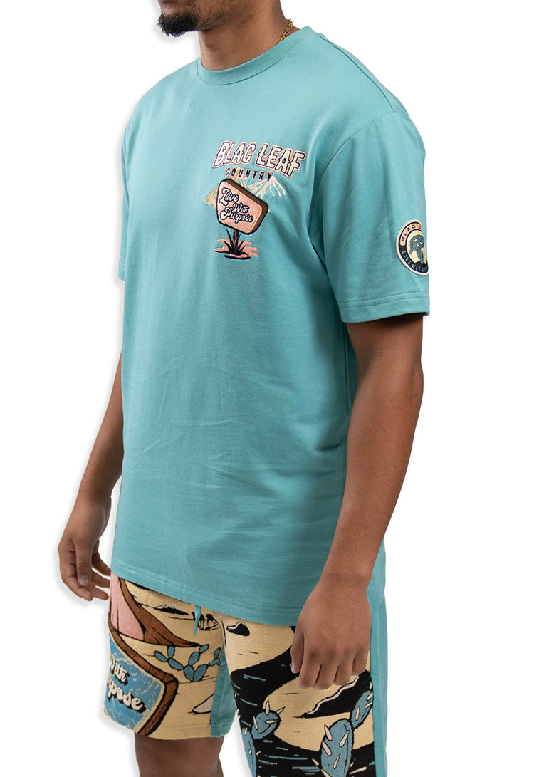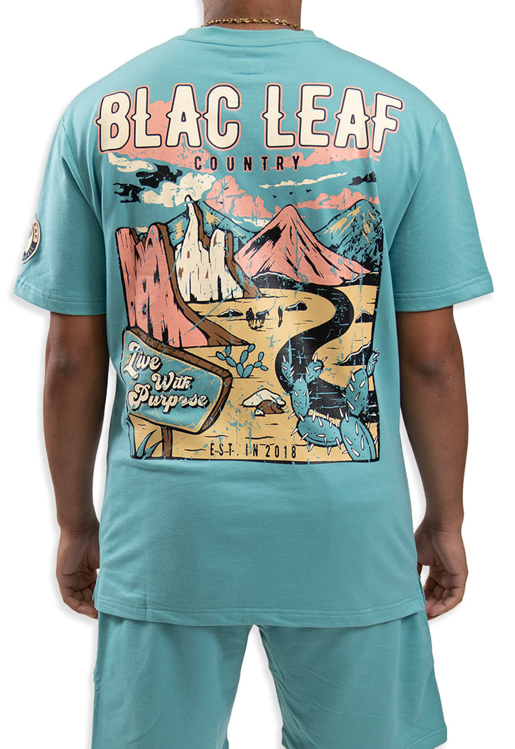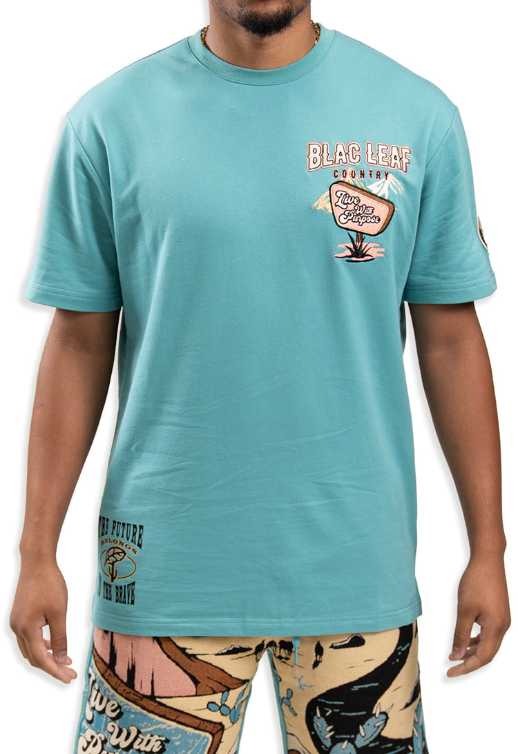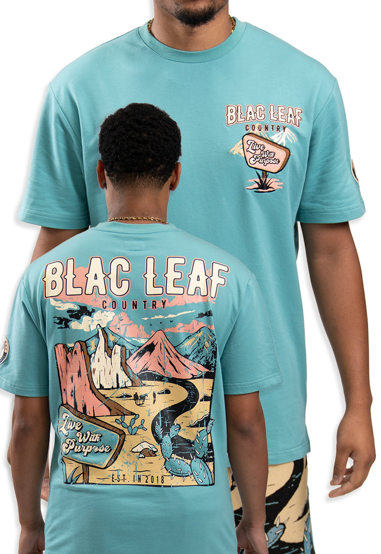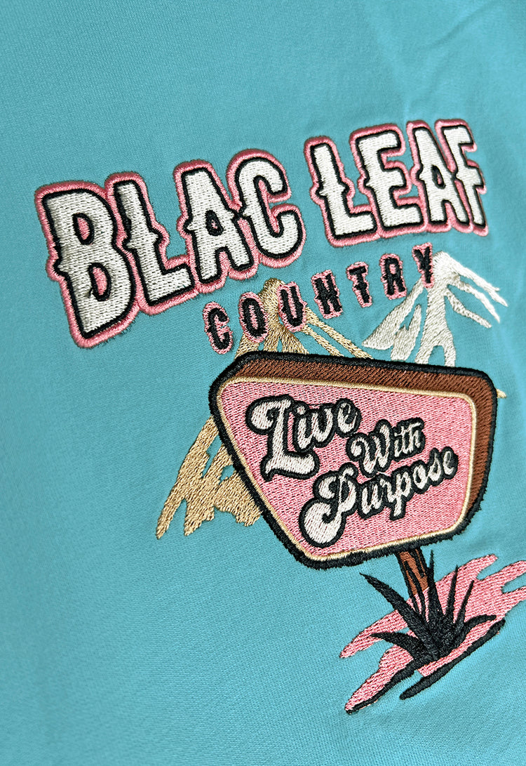 The Blac Leaf Country Shirt in vibrant teal brings a fresh twist to your casual wardrobe. Featuring an embroidered "BLAC LEAF COUNTRY" on the left pocket, it adds a touch of bold style. Just below, a charming embroidered sign reads "LIVE WITH PURPOSE," reminding you to embrace every moment with intention. Crafted for comfort and flair, this shirt is perfect for those who love to stand out while keeping things lighthearted and fun. Whether you're out on the town or relaxing with friends, this playful shirt makes a statement without saying a word.