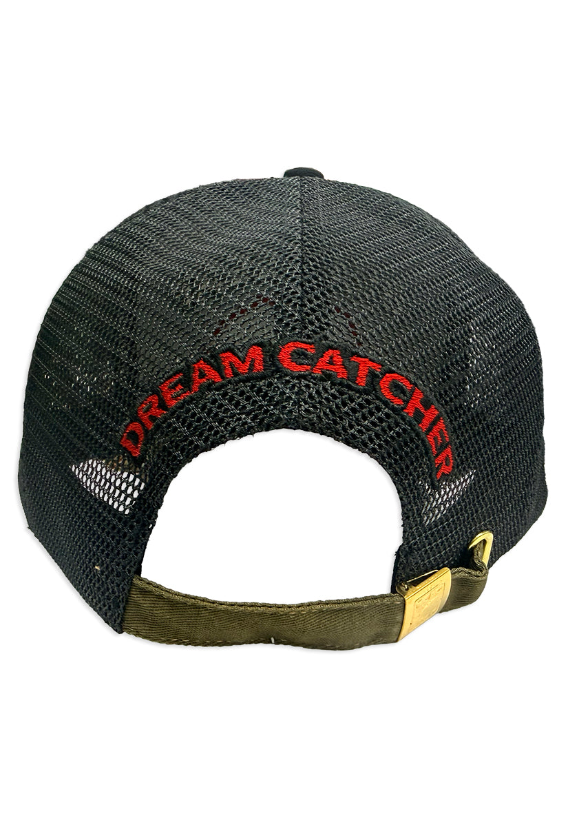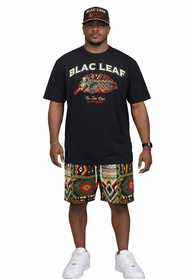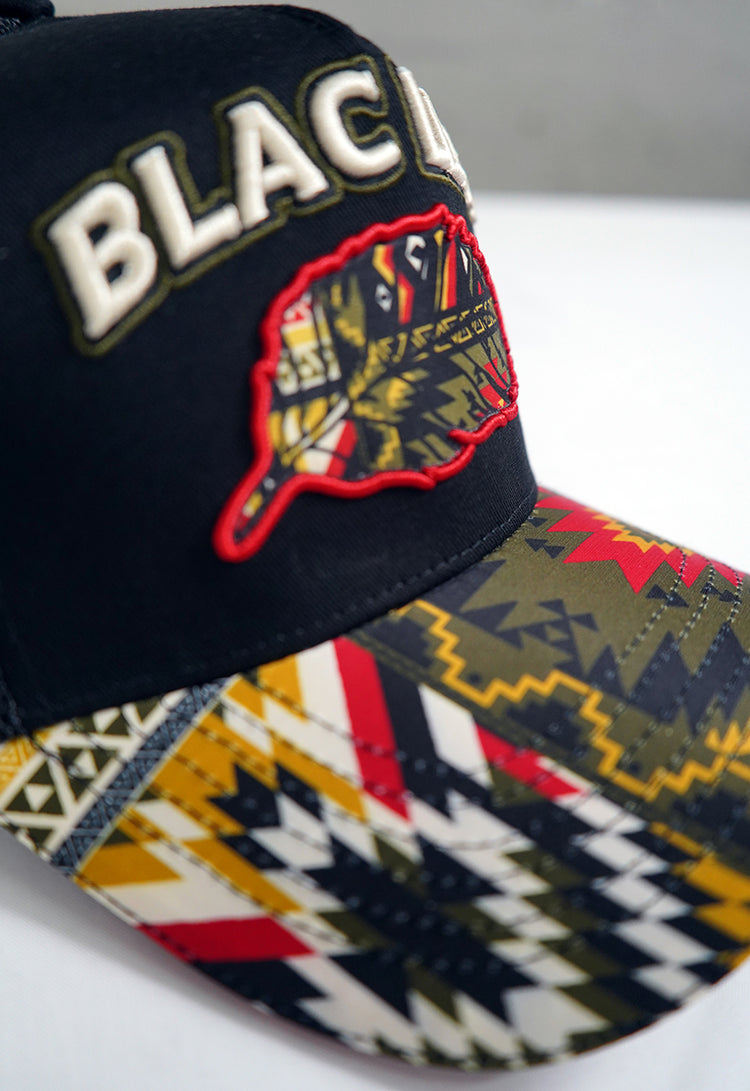 Rise and shine with the Sunrises On The Brave Trucker Hat—a bold statement piece that celebrates courage and cultural artistry. This striking black trucker hat features a captivating geometric Indian pattern design wrapping around the front rim, bringing authentic flair to your everyday look. The crown jewel? "BLAC LEAF" spelled out in cream puff embroidery with sharp black and olive outline stitching that pops against the dark fabric. Underneath you have an Indian geometric pattern leaf patch with black and red outline stitching. Perfect for those who aren't afraid to stand out, this hat blends edgy style with meaningful design. Whether you're hitting the road or making moves in the city, wear it with the confidence of someone who knows their vibe. Adjustable fit keeps you comfortable all day long, making this the ideal accessory for adventurers and trendsetters alike.